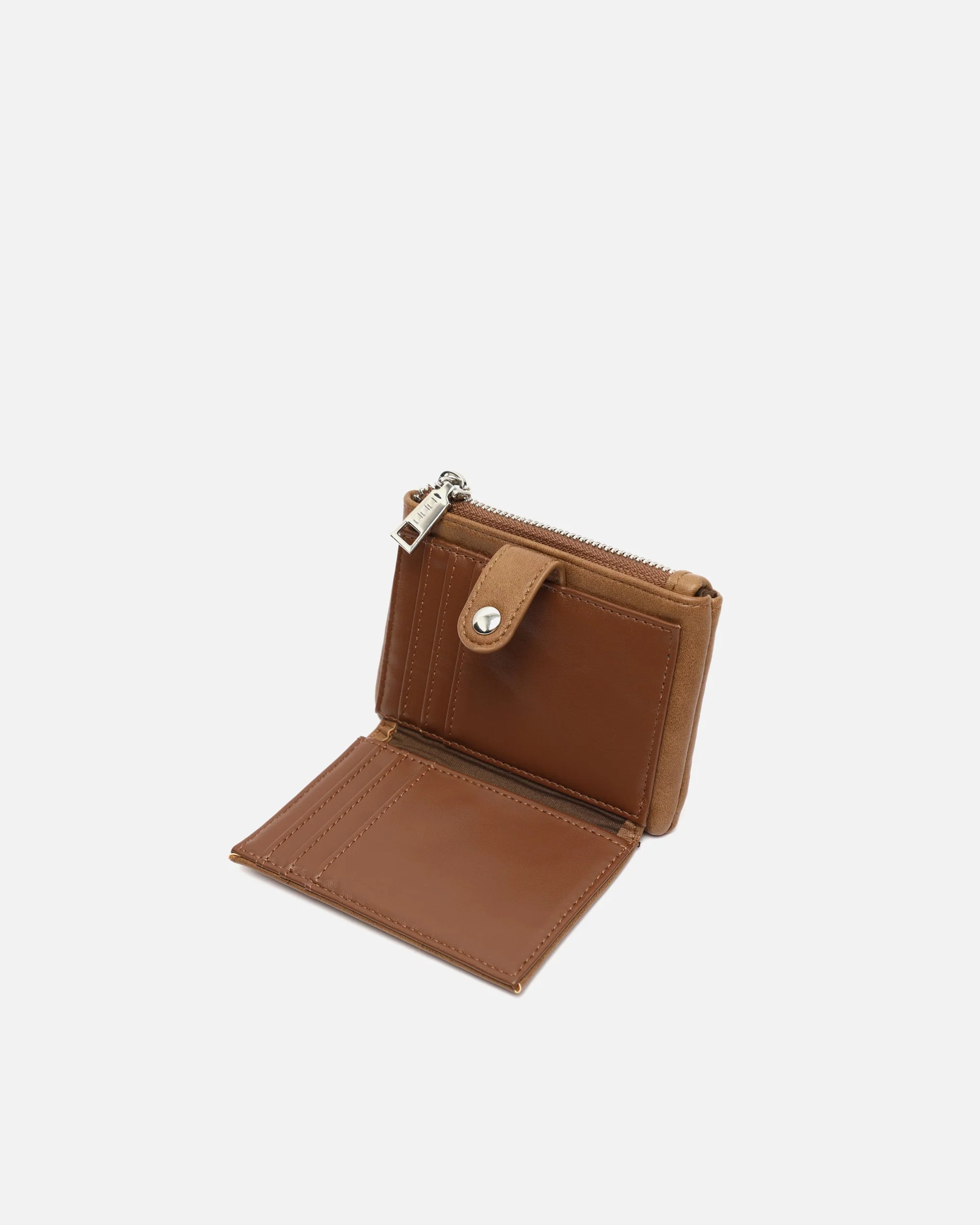 Su perfil limpio y funcional incluye compartimentos para tarjetas, monedas y billetes, todo asegurado con una lengüeta con broche de presión y cierre de cremallera para mayor tranquilidad. Y como cada detalle cuenta, su acabado en efecto piel le da un toque clásico y atemporal. ¿Lo mejor? Encaja con todos los estilos y es tan práctico como bonito.