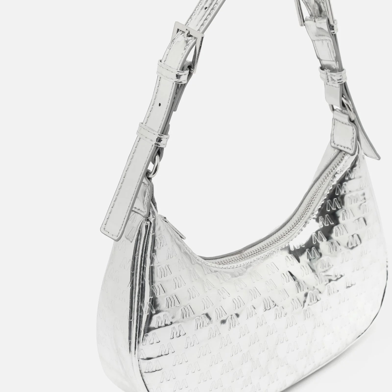 Diseño compacto en un modelo que marca la diferencia. El bolso Misra de Misako está confeccionado en un tejido con efecto metalizado, decorado con el icónico monograma de la marca grabado all over, lo que le aporta un brillo y estilo únicos.